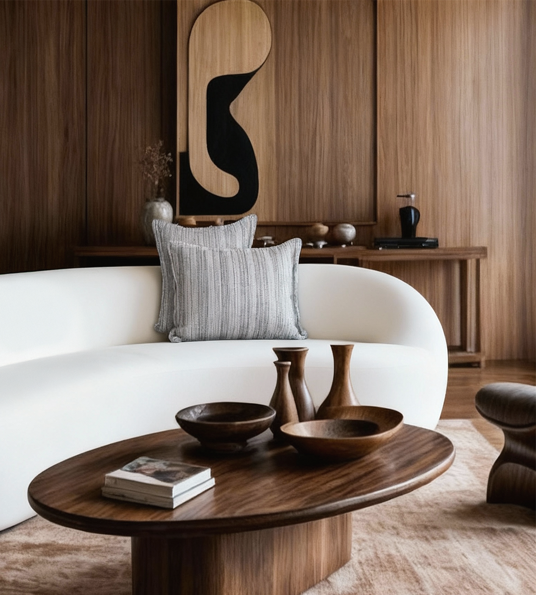 Juno brings a grounded elegance with its rich texture and refined palette. It instantly warms a space, perfect for layered styling in reading corners or formal lounges.