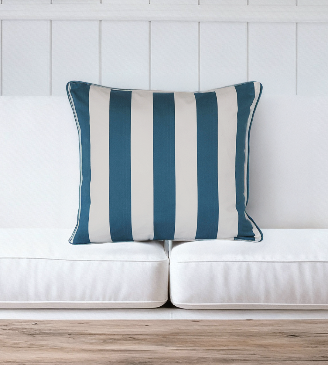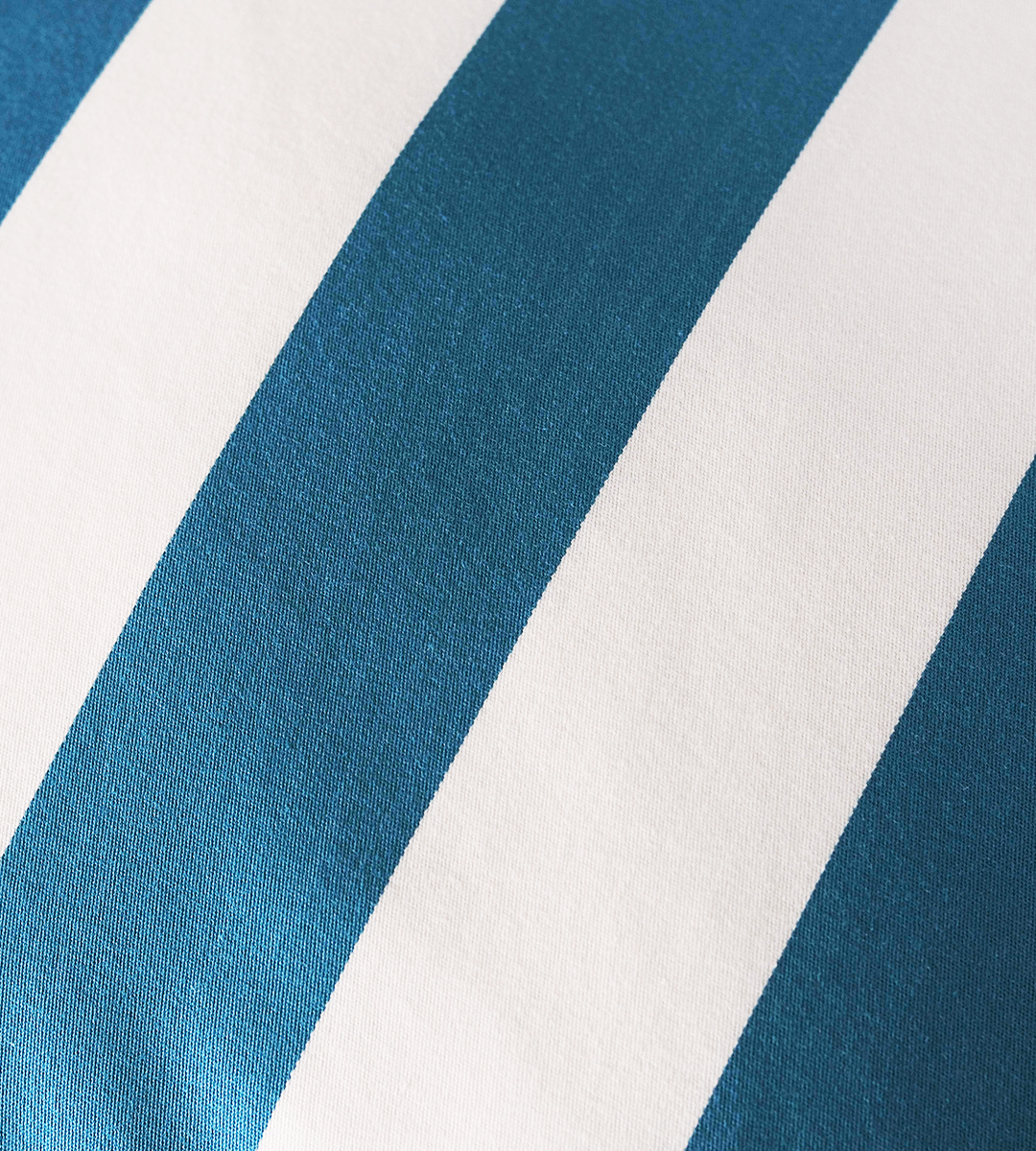 With its bold vertical stripes and refreshing blue-and-cream palette, it adds structure and brightness—striking the perfect balance between classic and contemporary.